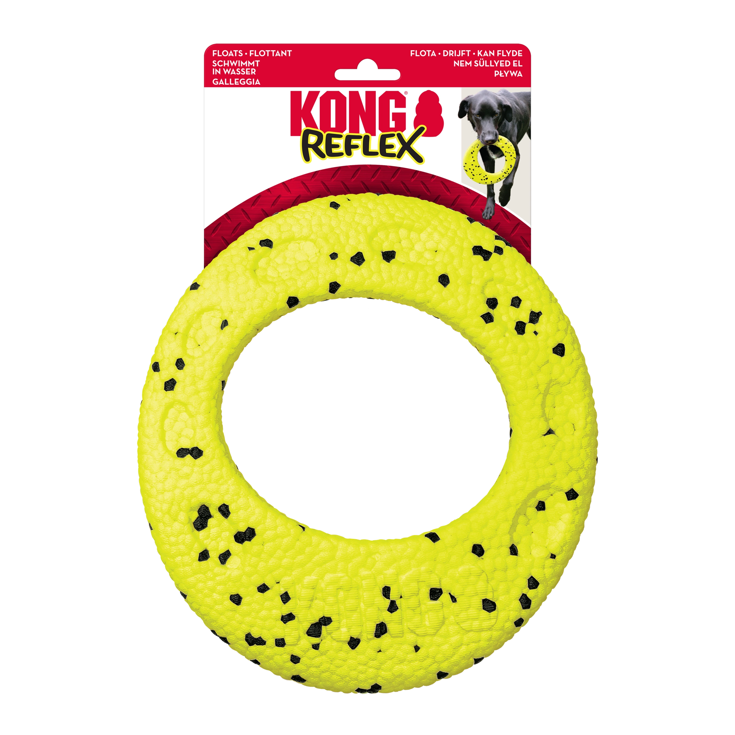 KONG Reflex Flyer’s durable, flexible bounce comes from the same cutting-edge material as elite running shoe soles— so rugged it’s guaranteed to last through tough fetching. Bite-defying self-healing properties repair toothmarks for long-lasting, instinct-satisfying interactive fun. Floats for water play and stands up to the elements for seasons of fetching.