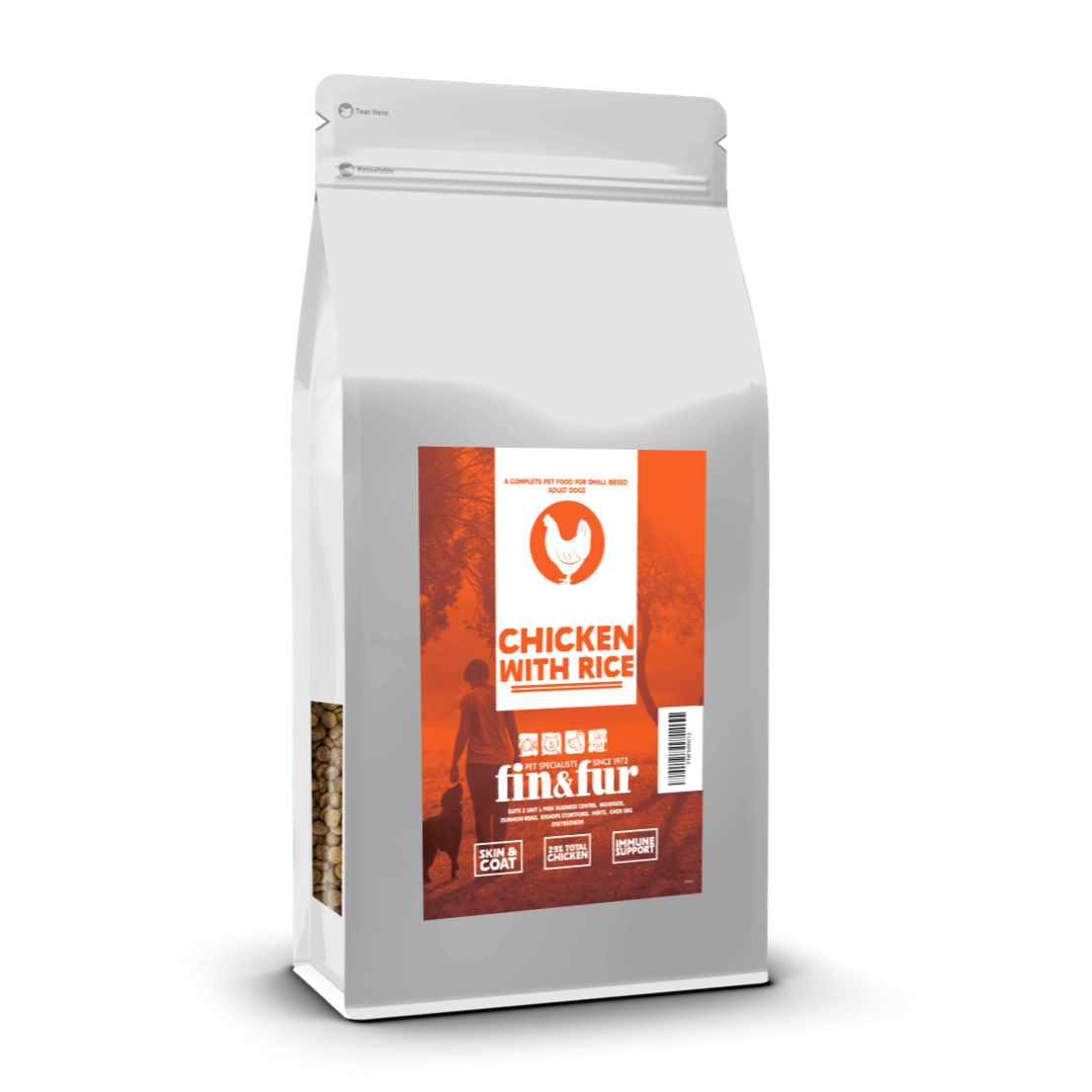 Fin & Fur Super Premium Mini Chicken & Rice is a complete dog food which is ideally suitable for adult dogs with a sensitive digestion and small mouths.