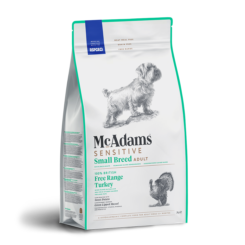 Here at McAdams, we only use RSPCA Assured, high welfare, free range meat, and Turkey is a great protein option for dogs with allergies. We’ve completely redesigned our recipe to remove any well-known allergens.