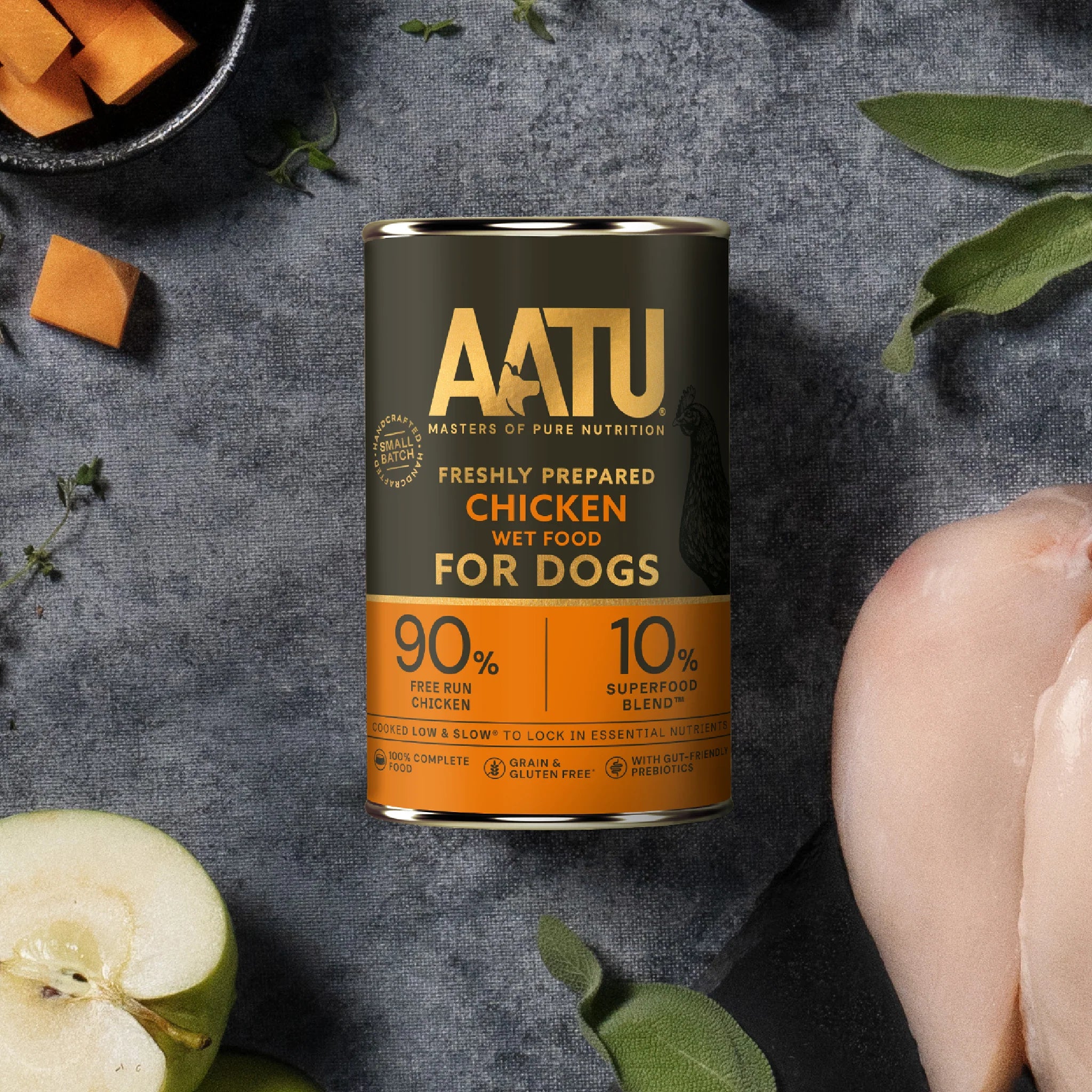 AATU dog food is made with 90% meat or fish and 10% Superfood Blend™ for complete, grain free nutrition. Using raw ingredients and cooked using our Low and Slow™ method, it offers the benefits of a raw diet in dry food form - ideal for those seeking high protein, nutrient-rich meals.