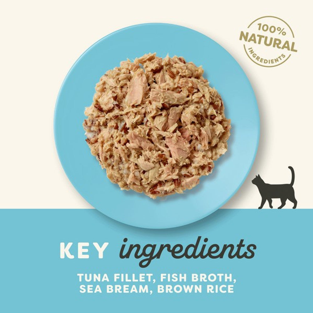 Tuna Fillet 70%, Fish Broth 24%, Sea Bream 5%, Brown Rice 1%.