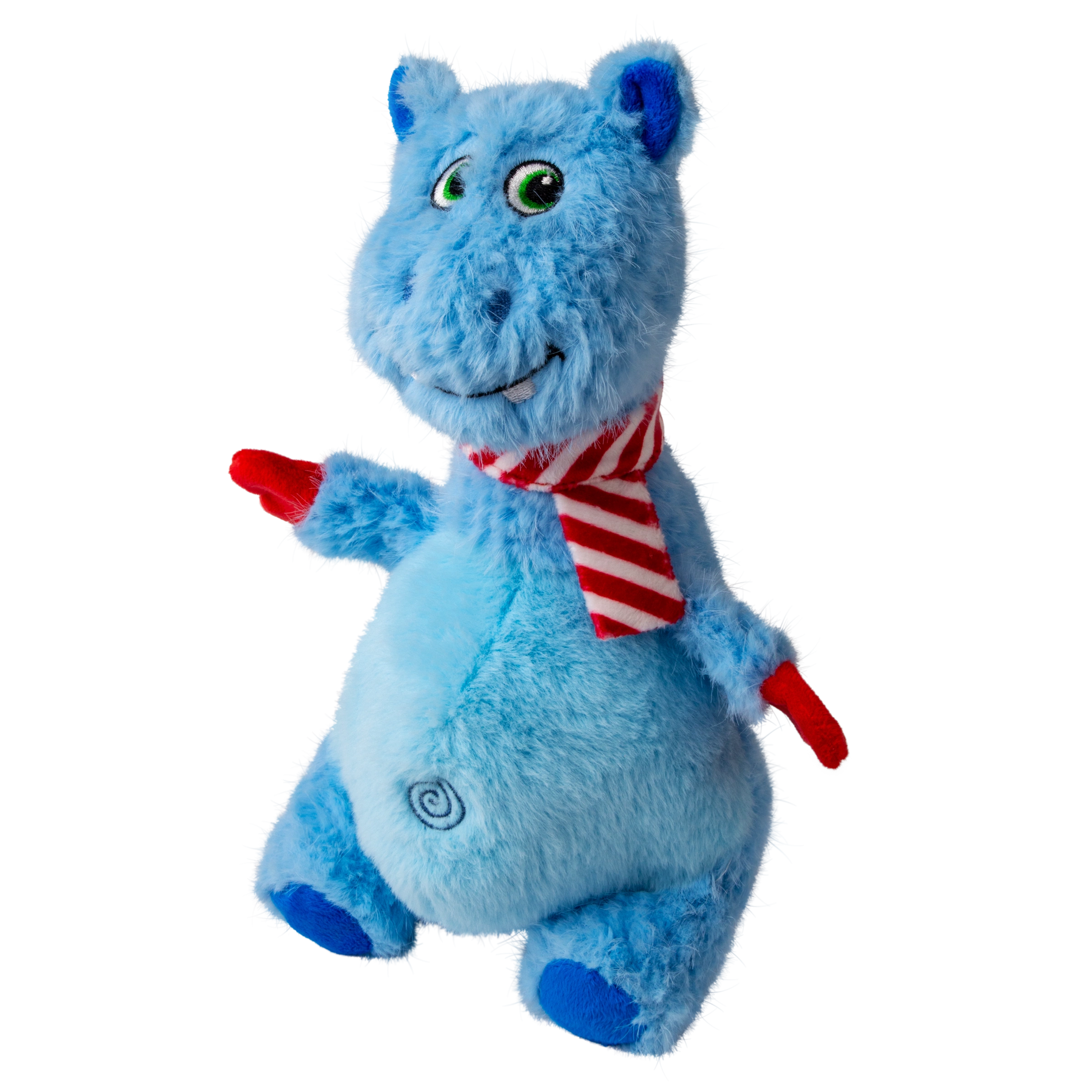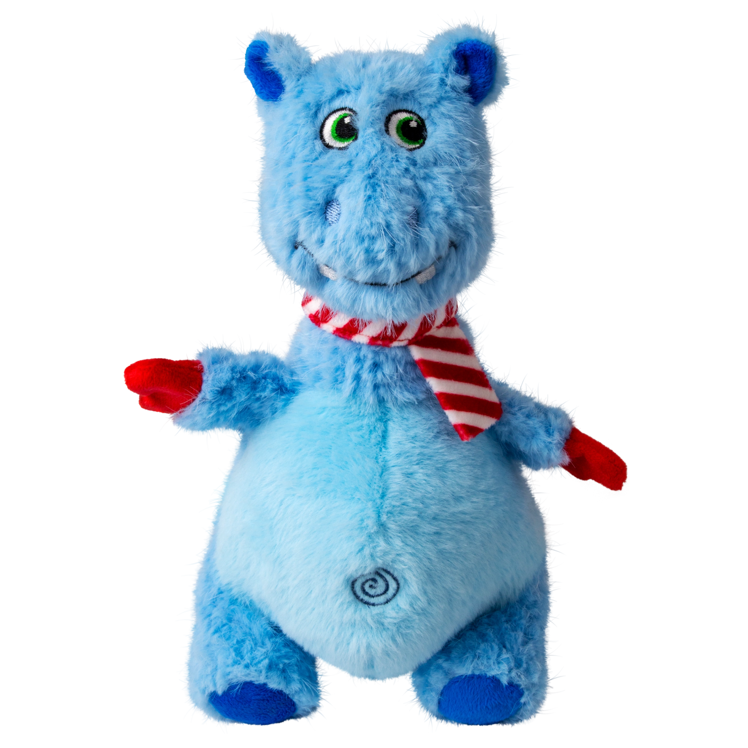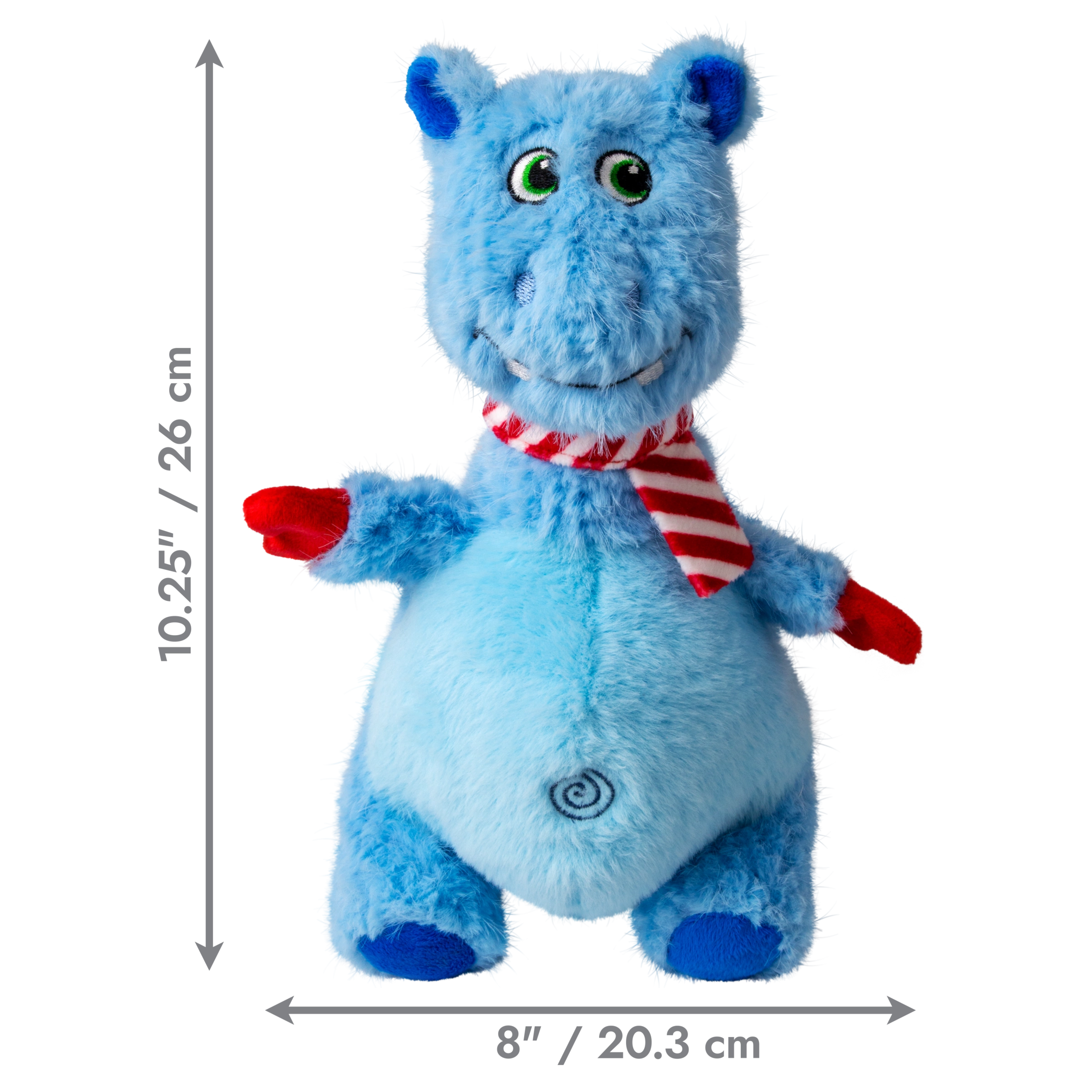KONG® Holiday Knots Belly Hippo gives Santa’s bowl full of jelly competition! Soft and cuddly on the outside, a strong, durable rope ball on the inside makes its belly round and weighty. This dense internal skeleton rope ball adds heft and movement that entices instinctual thrashing, flinging, and light chewing. A squeaker in this hippo’s head piques dogs’ interest and adds excitement to play sessions. Knots Belly Hippo is also ideal for dogs who like to carry their toys, as well as for naptime snuggles. Dressed seasonally for the perfect holiday gift!