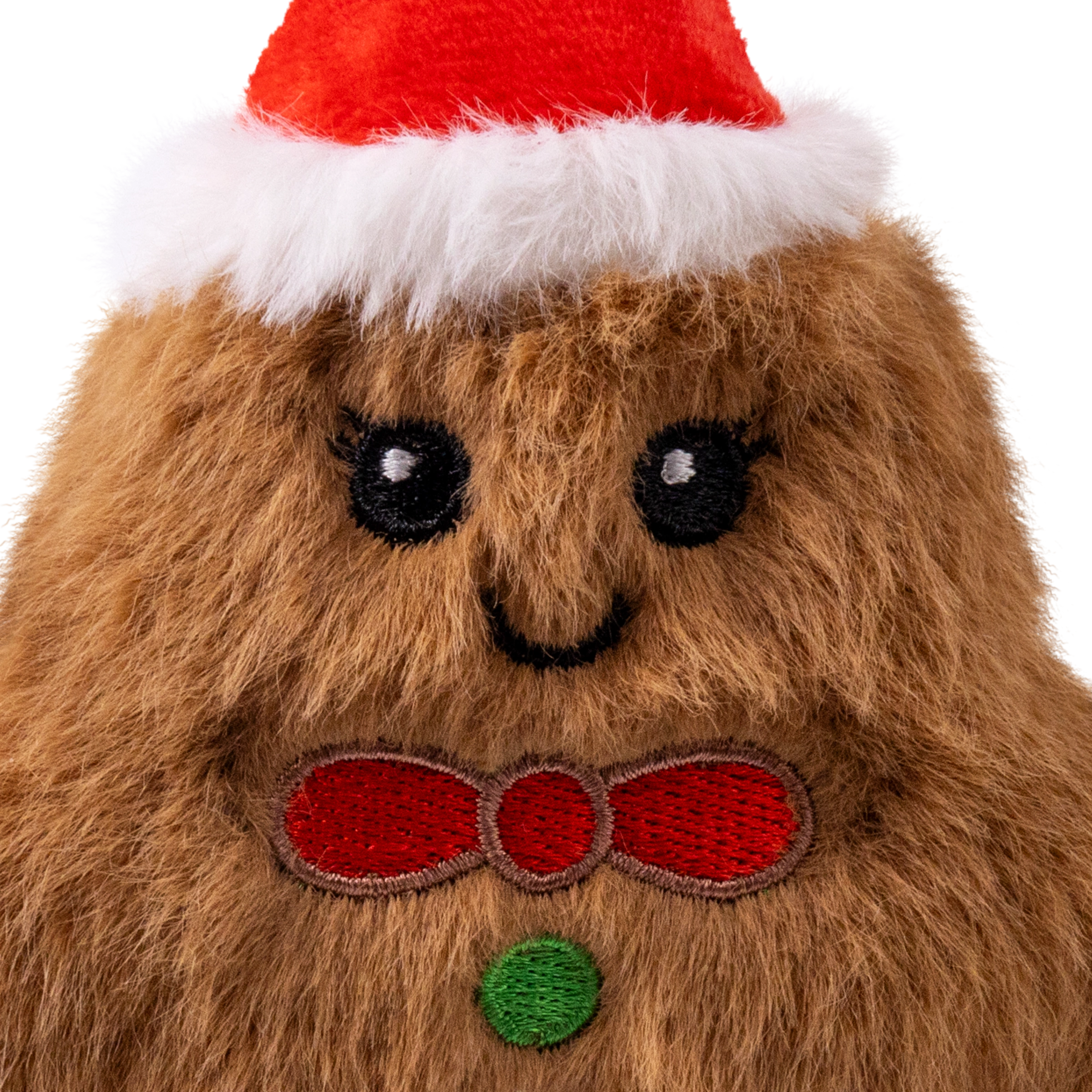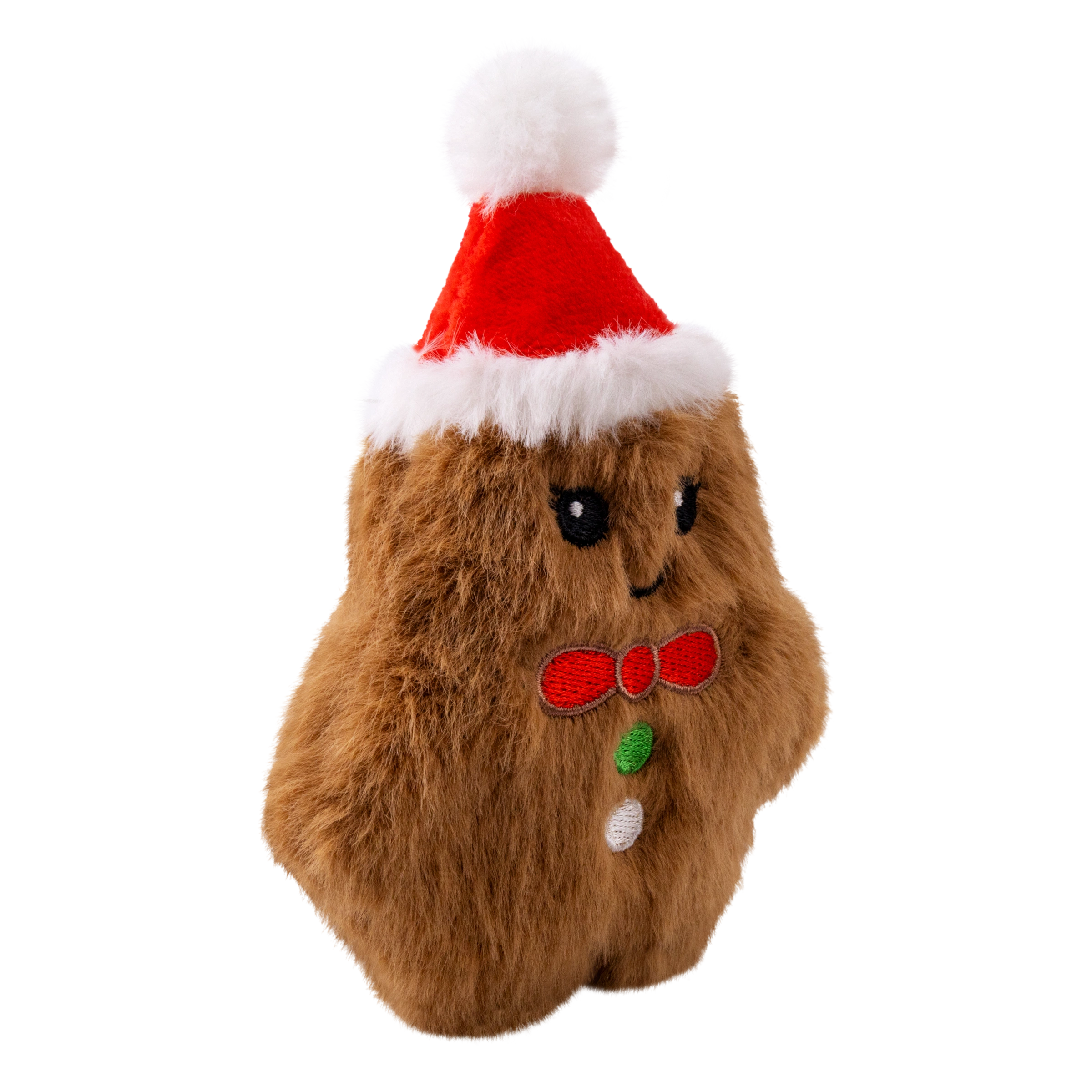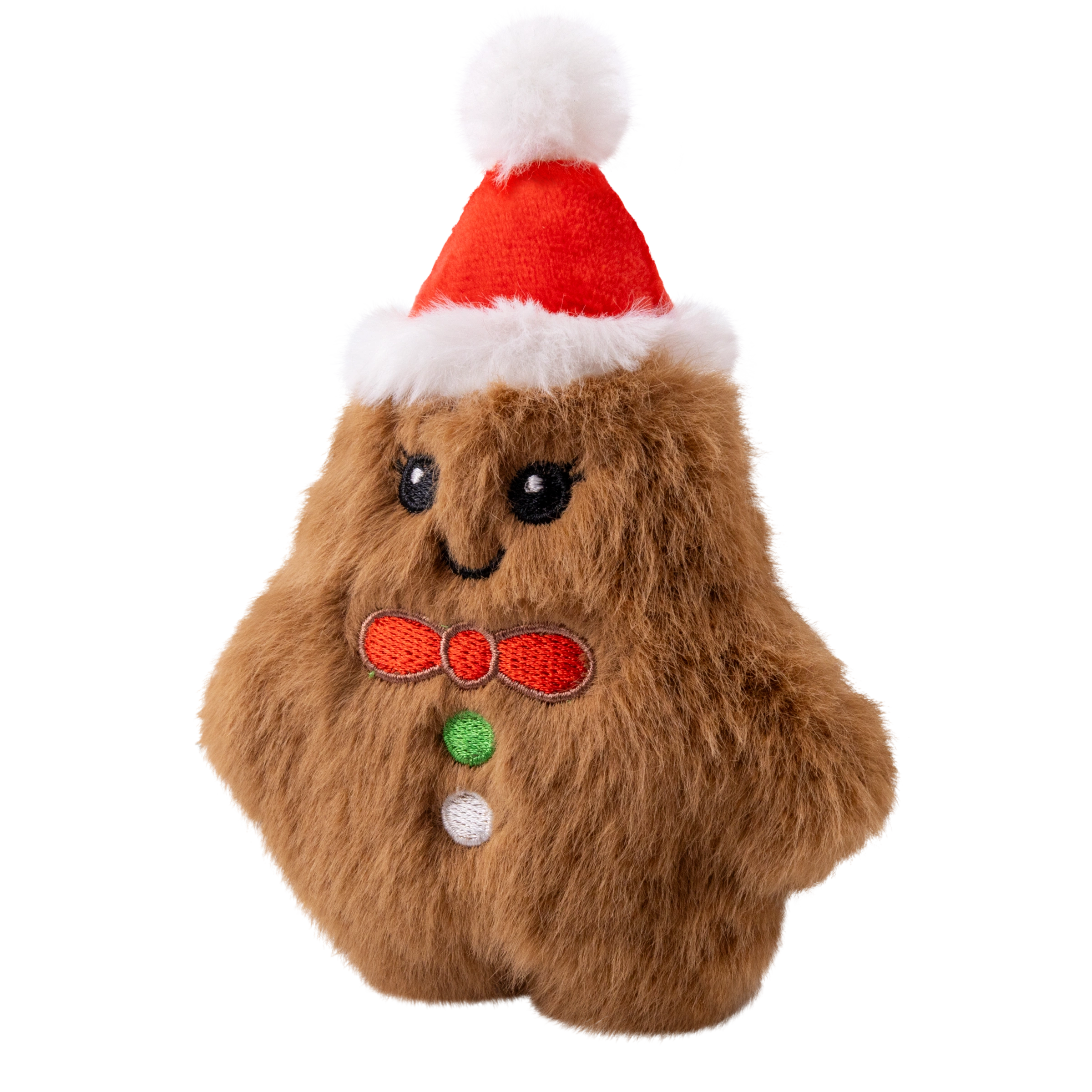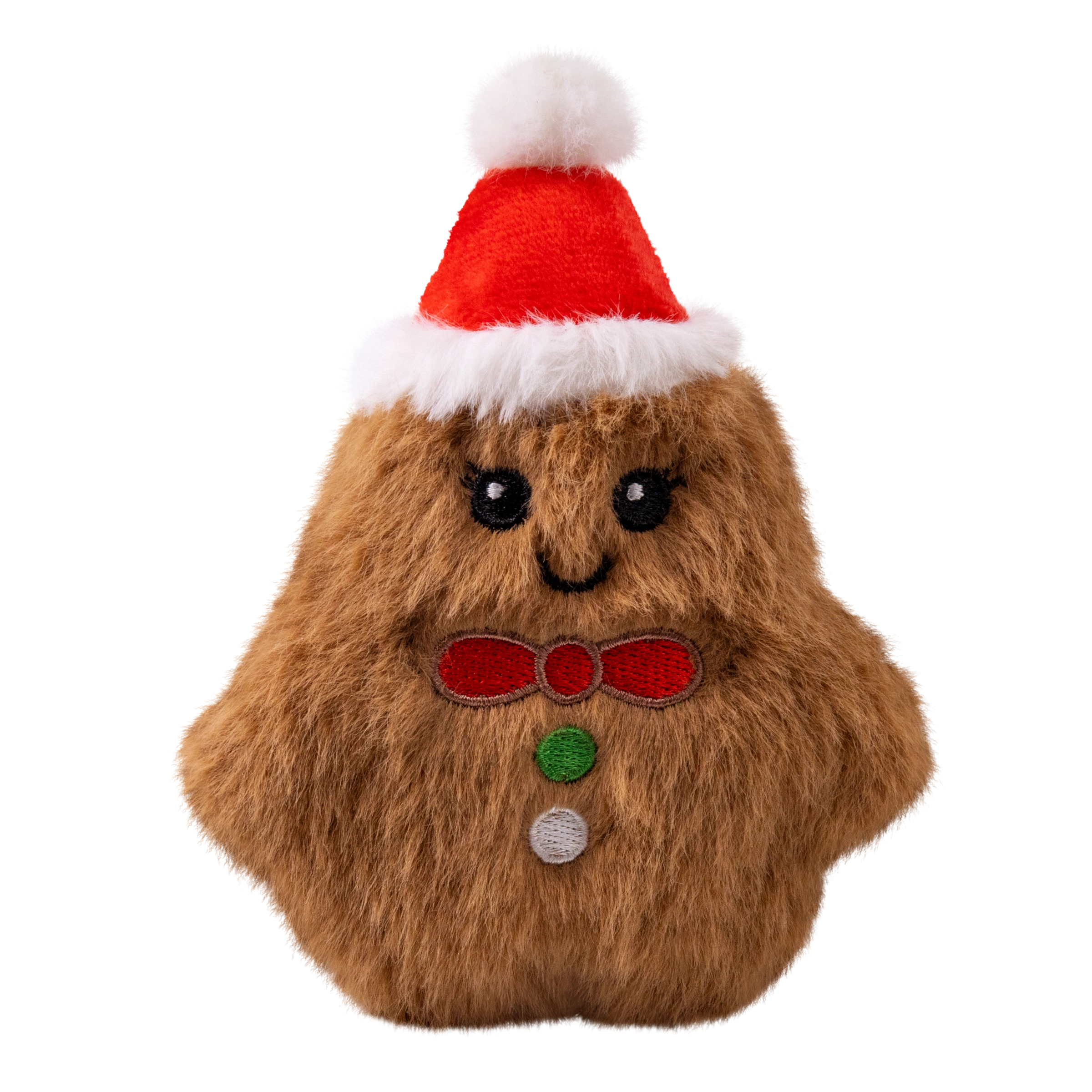 KONG Snuzzles Mini Gingerbread is perfect for little dogs who love big noises! This tiny & plump toy cookie is perfect for squeaking, carrying, and snuggling during the holidays. The full-body squeaker creates a dense mouthfeel that entices chewing, gumming, and squishing. The flat shape and velvety plush exterior makes this mini character easy to grab & perfect for indoor play.